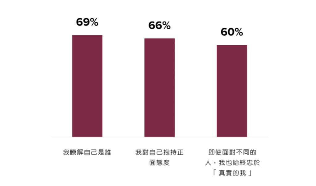 | 認同「我對自己是有自信的」 | 72% | 69% | 亞太區整體自信略低於全球平均 |